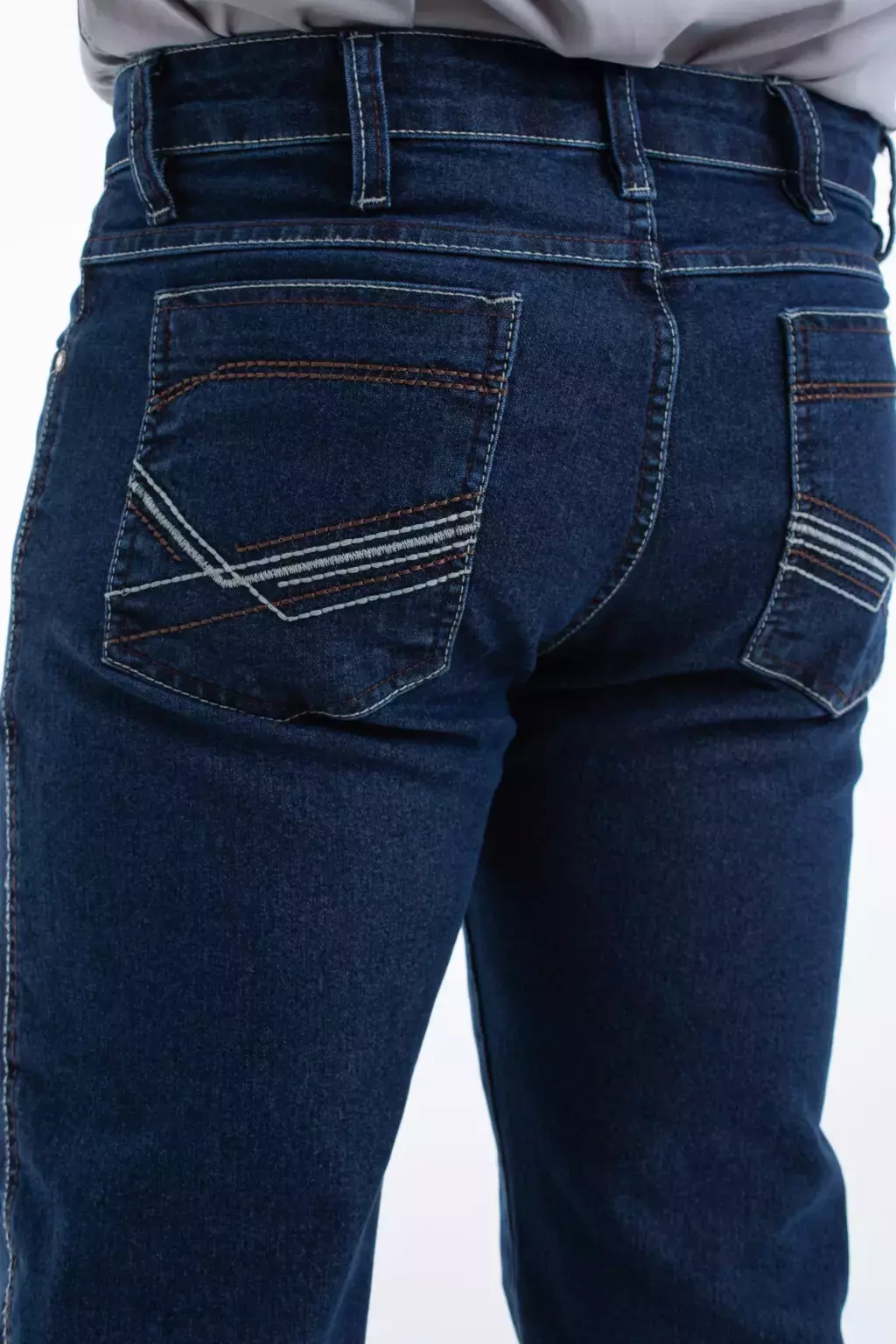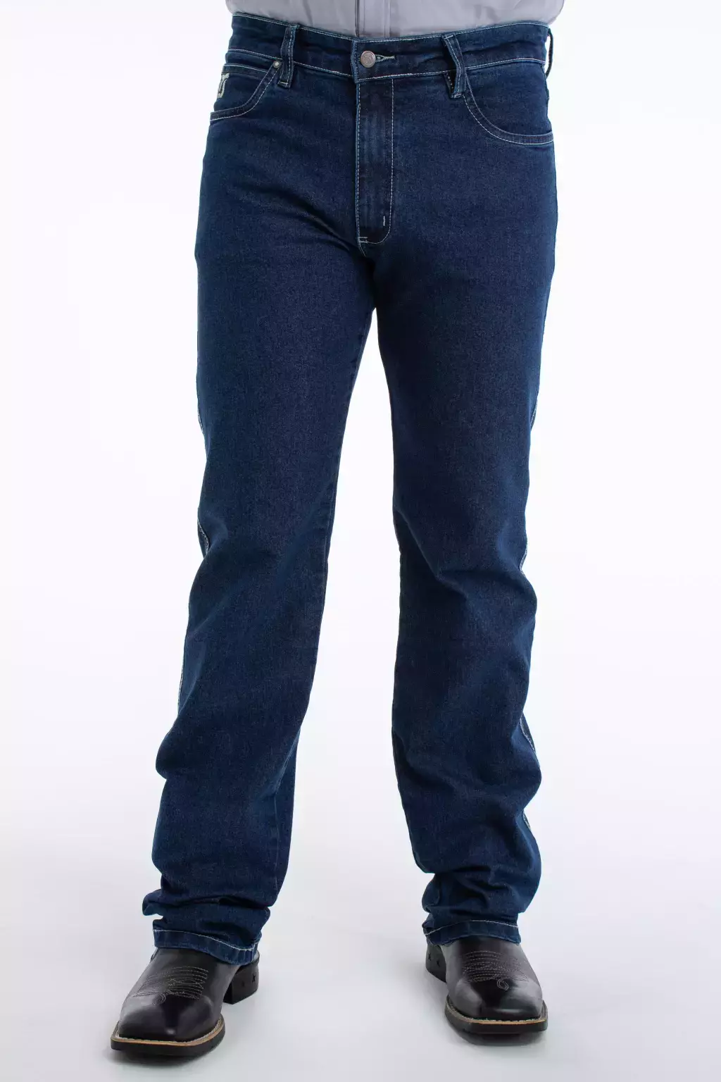 O destaque fica por conta dos bordados contrastantes nos bolsos traseiros, que conferem identidade única e valorizam o visual com personalidade. Com tom jeans azul escuro, a peça é versátil e pode ser facilmente combinada com camisas ou camisetas para composições autênticas e sofisticadas.