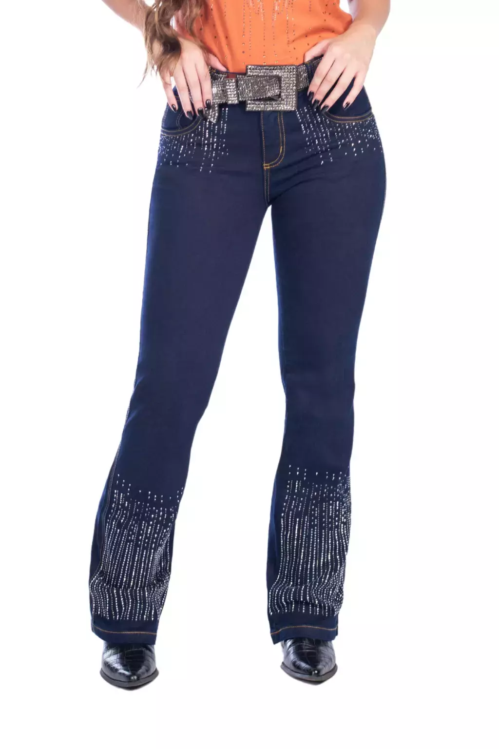 Descrição: Ilumine seu estilo country com nossa exclusiva calça com apliques termocolantes. Confeccionada em tecido de alta qualidade, esta peça une conforto e sofisticação em um design único. O brilho elegante dos strass adiciona um toque de glamour, elevando o seu look a um novo patamar. Seja em shows, festas ou em qualquer evento especial, esta calça é a escolha perfeita para quem deseja se destacar com elegância e personalidade.