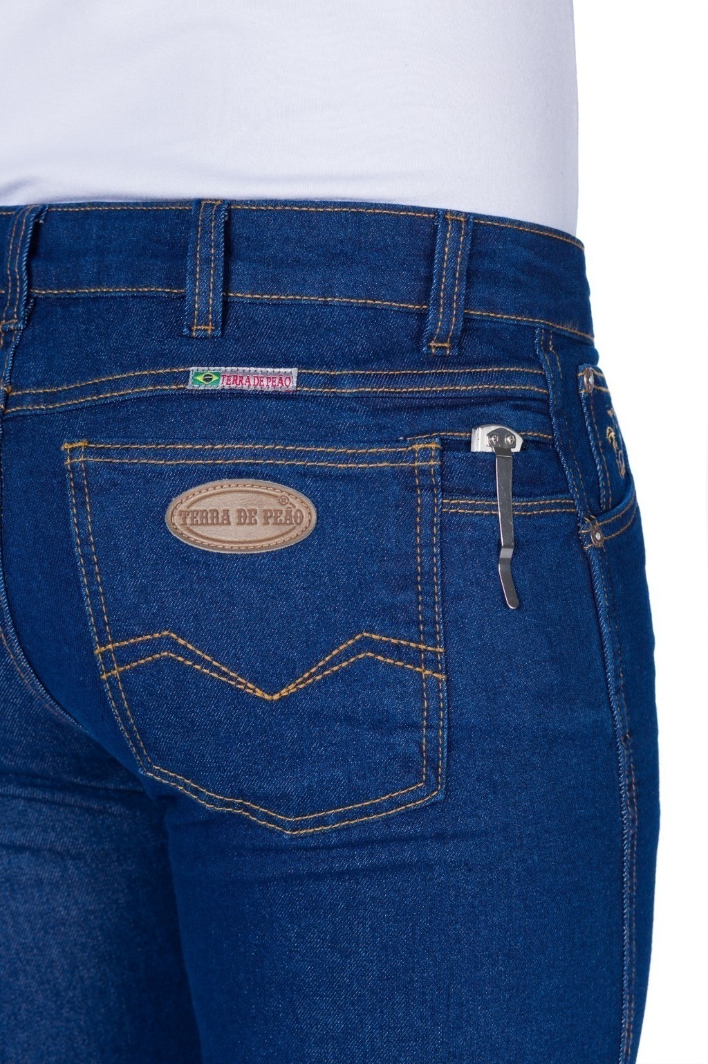 Confeccionada em tecido resistente com 80% algodão, 18% poliéster e 2% elastano, essa calça oferece toque macio, durabilidade e flexibilidade. O destaque fica por conta do bolso lateral exclusivo, pensado especialmente para acomodar o canivete com segurança — um detalhe que reforça sua identidade country de forma autêntica.